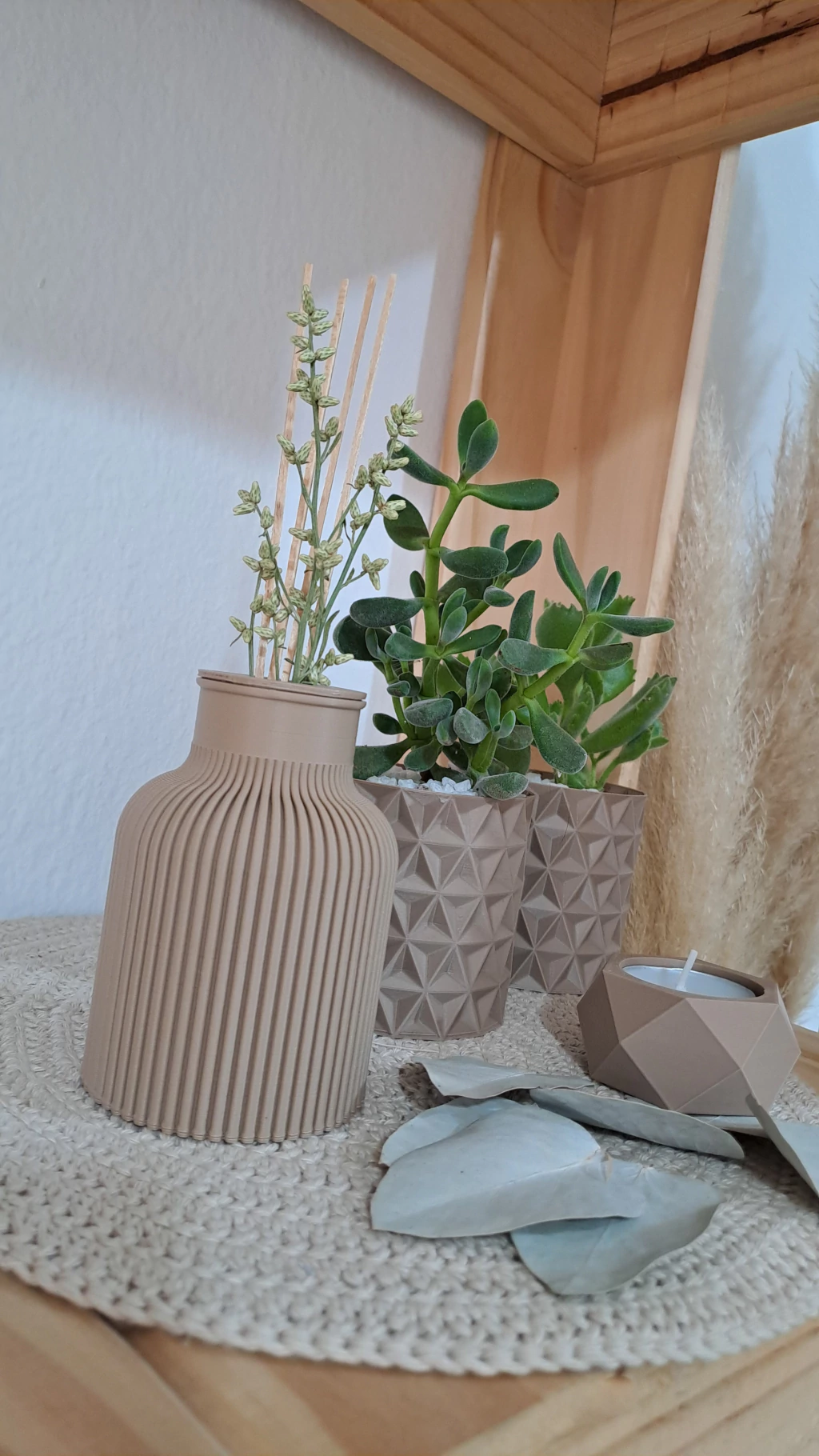 Difusor o florerito de material 100% biodegradable, con varillas de pino,